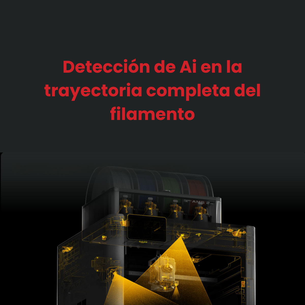 - AMS 2 Pro incluido: multicolor/multimaterial con secado y RFID.