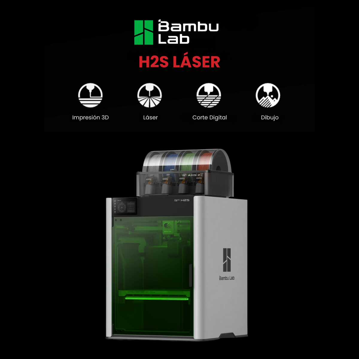 - Impresora Bambu Lab H2S (single-nozzle) con pantalla táctil 5″