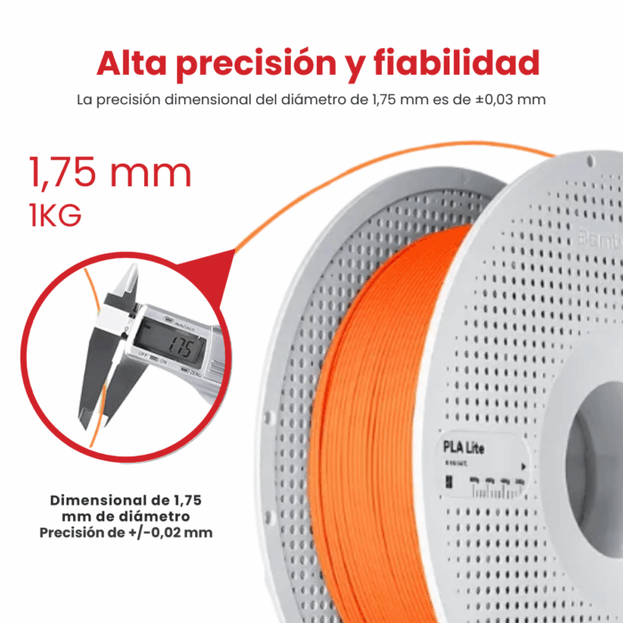Diámetro 1,75 mm: también funciona en la mayoría de impresoras FDM 1,75 mm (ajustando parámetros como cualquier PLA).