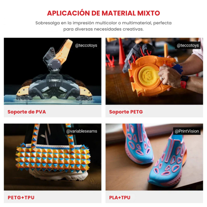 | Compatibilidad base | PLA, PETG, TPU, PVA, PCTG |